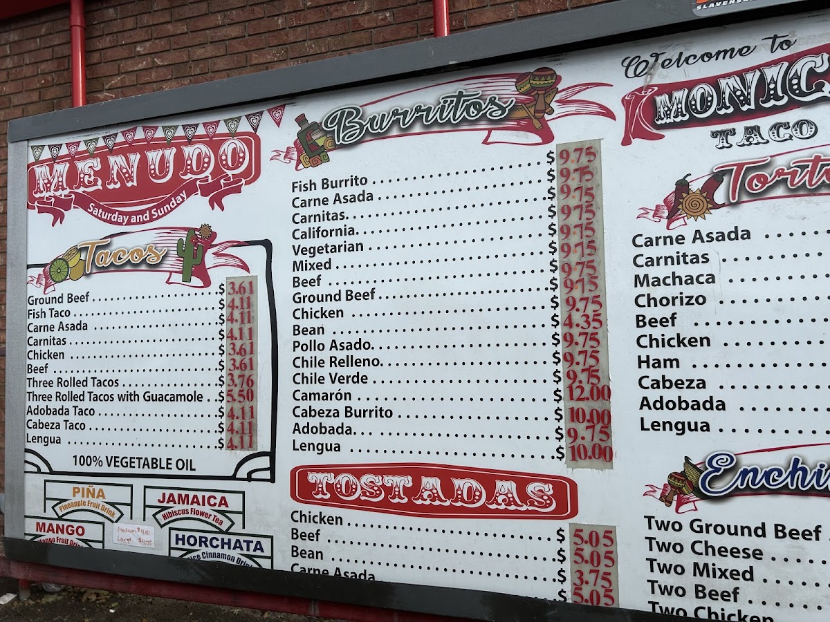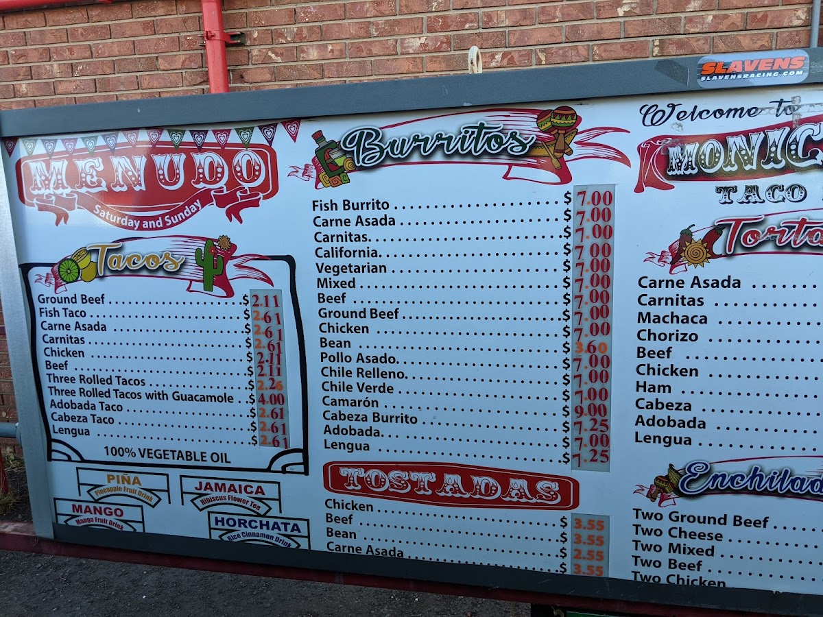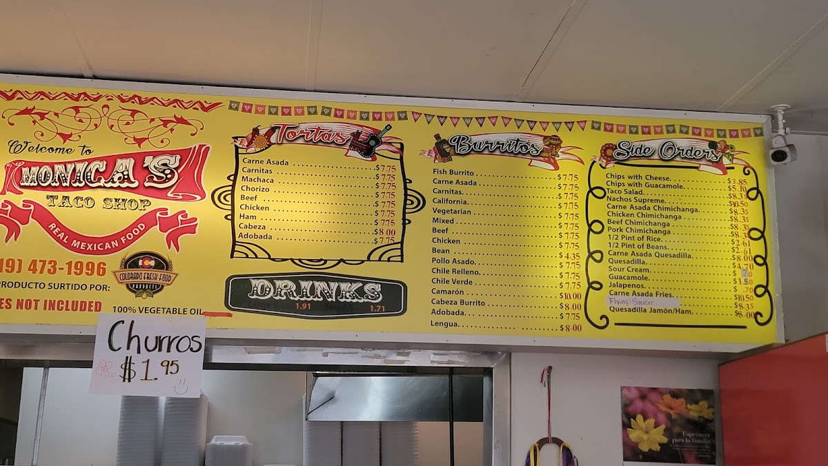 Monica's Taco Shop Menu