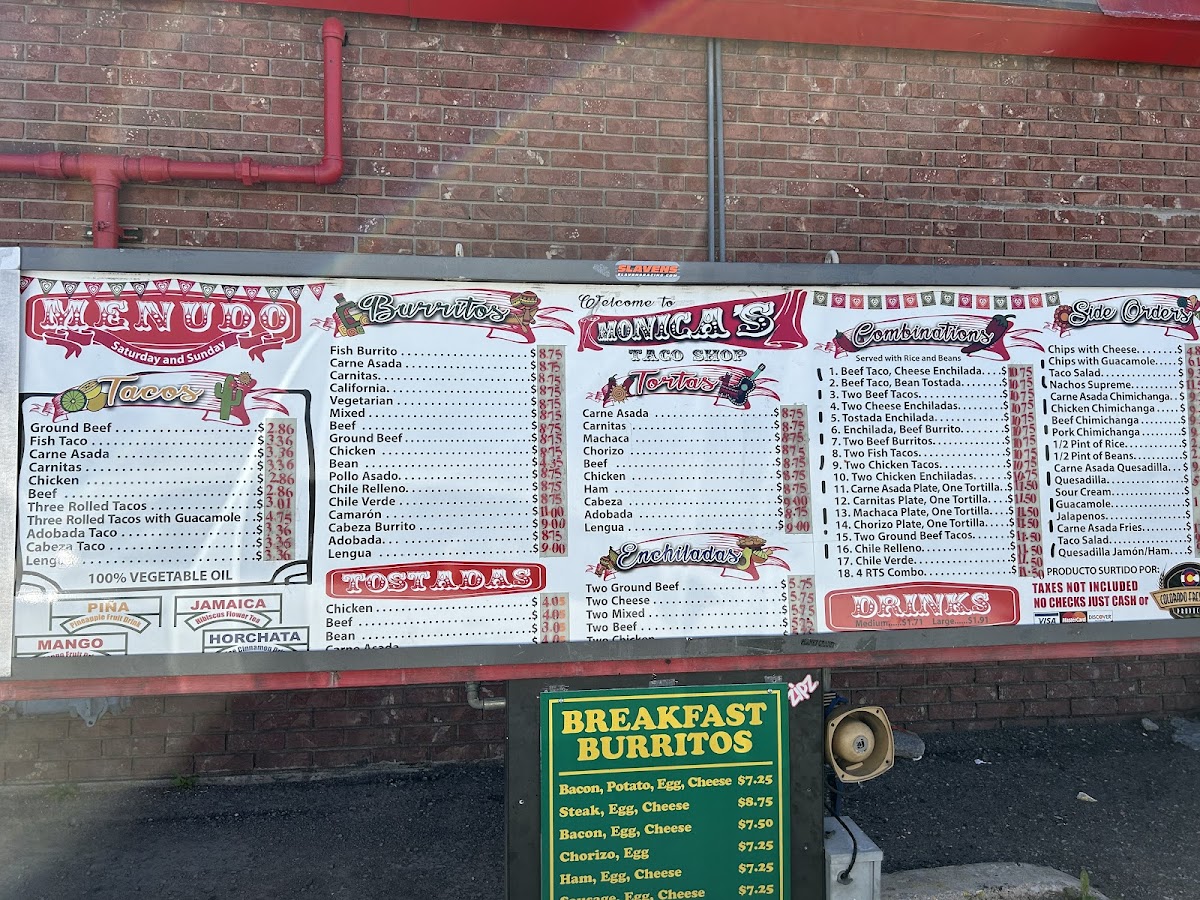 Monica's Taco Shop offers a straightforward, casual menu that focuses on hearty, satisfying Mexican favorites. This is the kind of place where simple ingredients come together in generous portions perfect for any time of day, whether you're stopping by for a quick breakfast burrito or settling in for a relaxed lunch or dinner.
